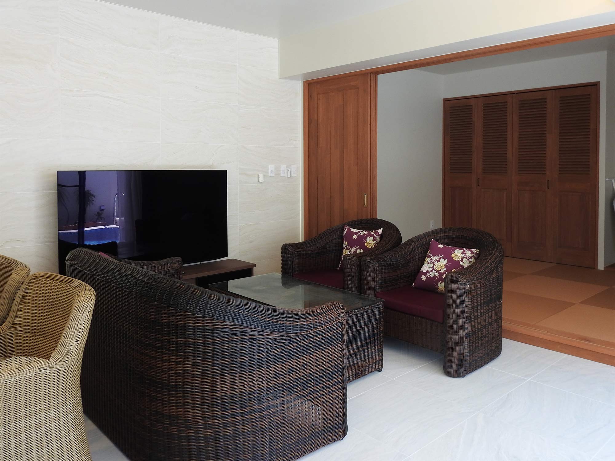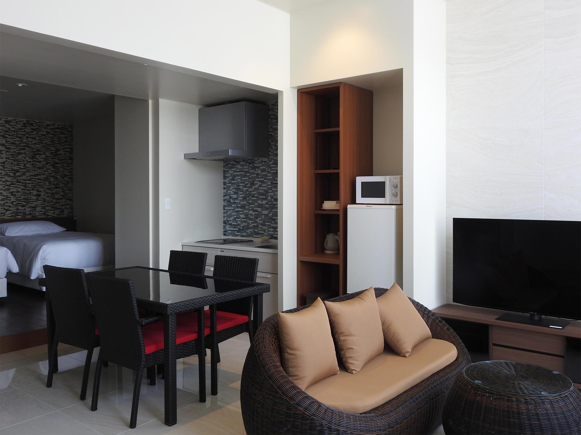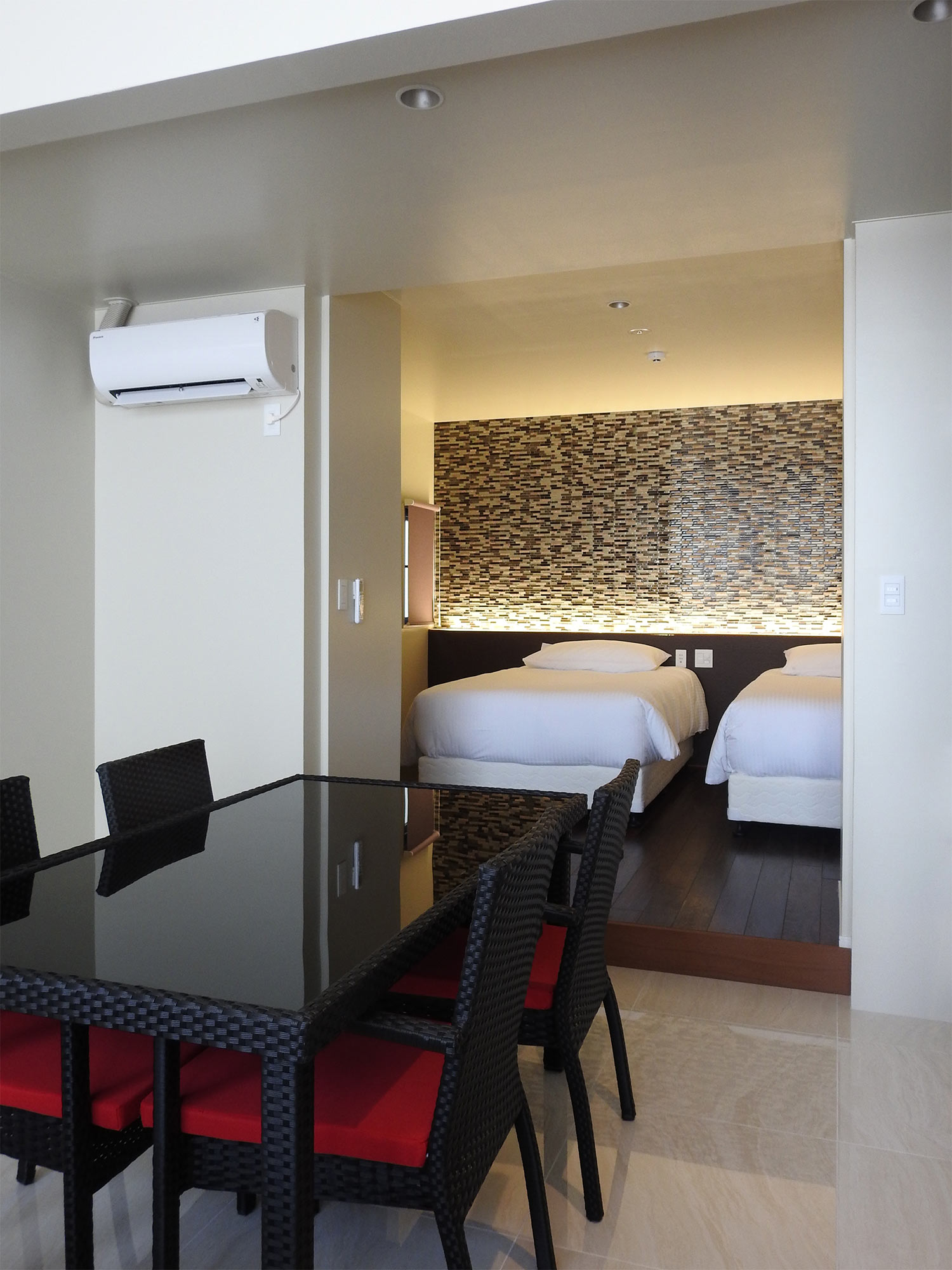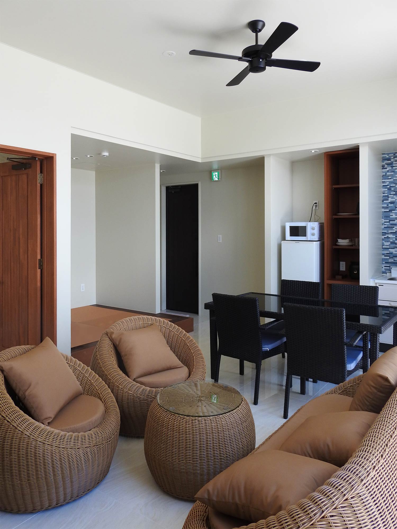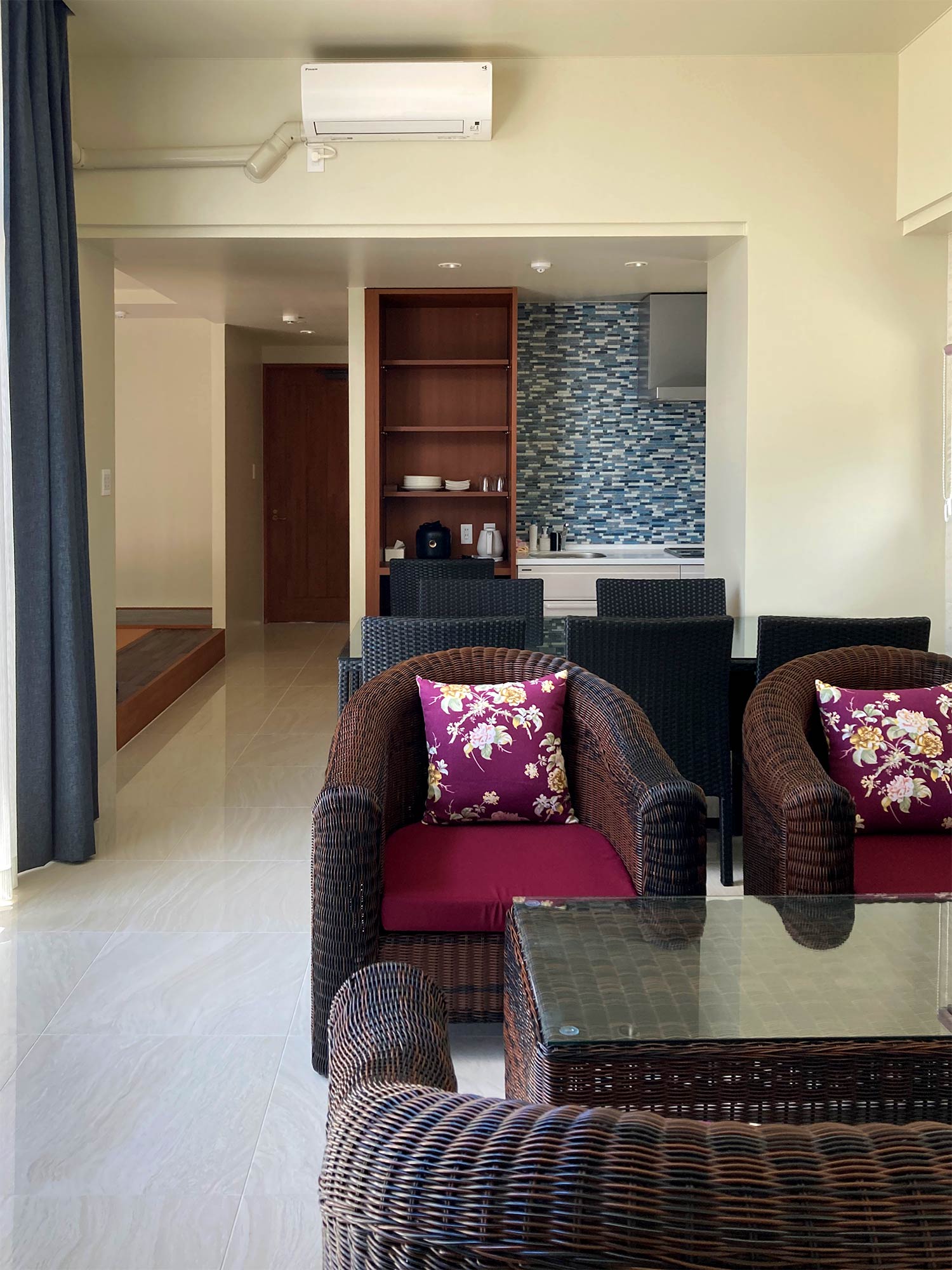 | 室内設備 | インターネット(無料Wi-Fi完備)・エアコン・大型TV・除湿機・掃除機・ドライヤー・ハンガー ※Plumeriaのみ 洗濯機・乾燥機・セーフティーボックス |