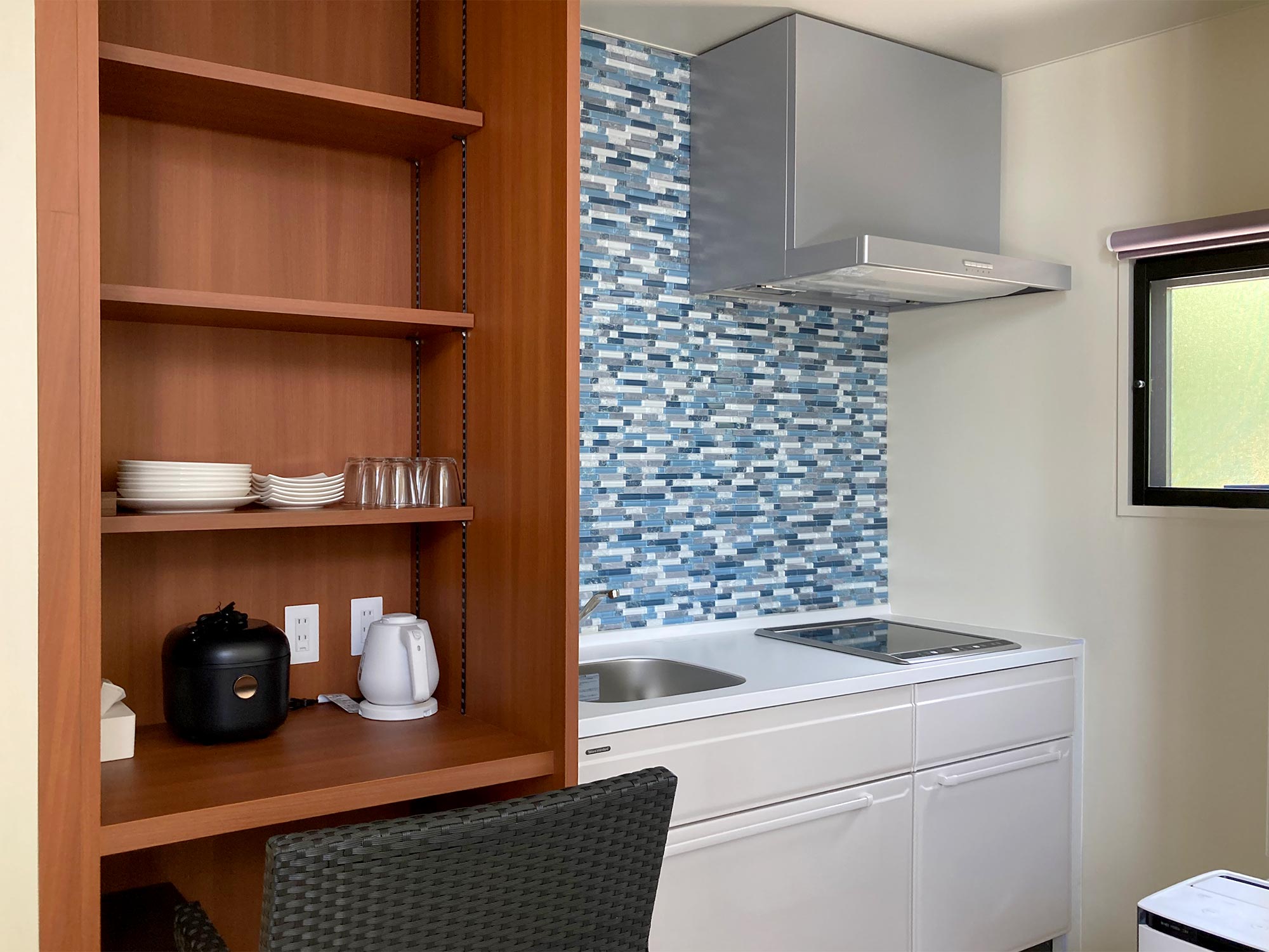 | キッチン設備 | 冷蔵庫・IHキッチン・炊飯器・調理器具一式・電子レンジ・電気温水ポット・食器セット ※ワンルームタイプのDeigoには、キッチンはありません。 |