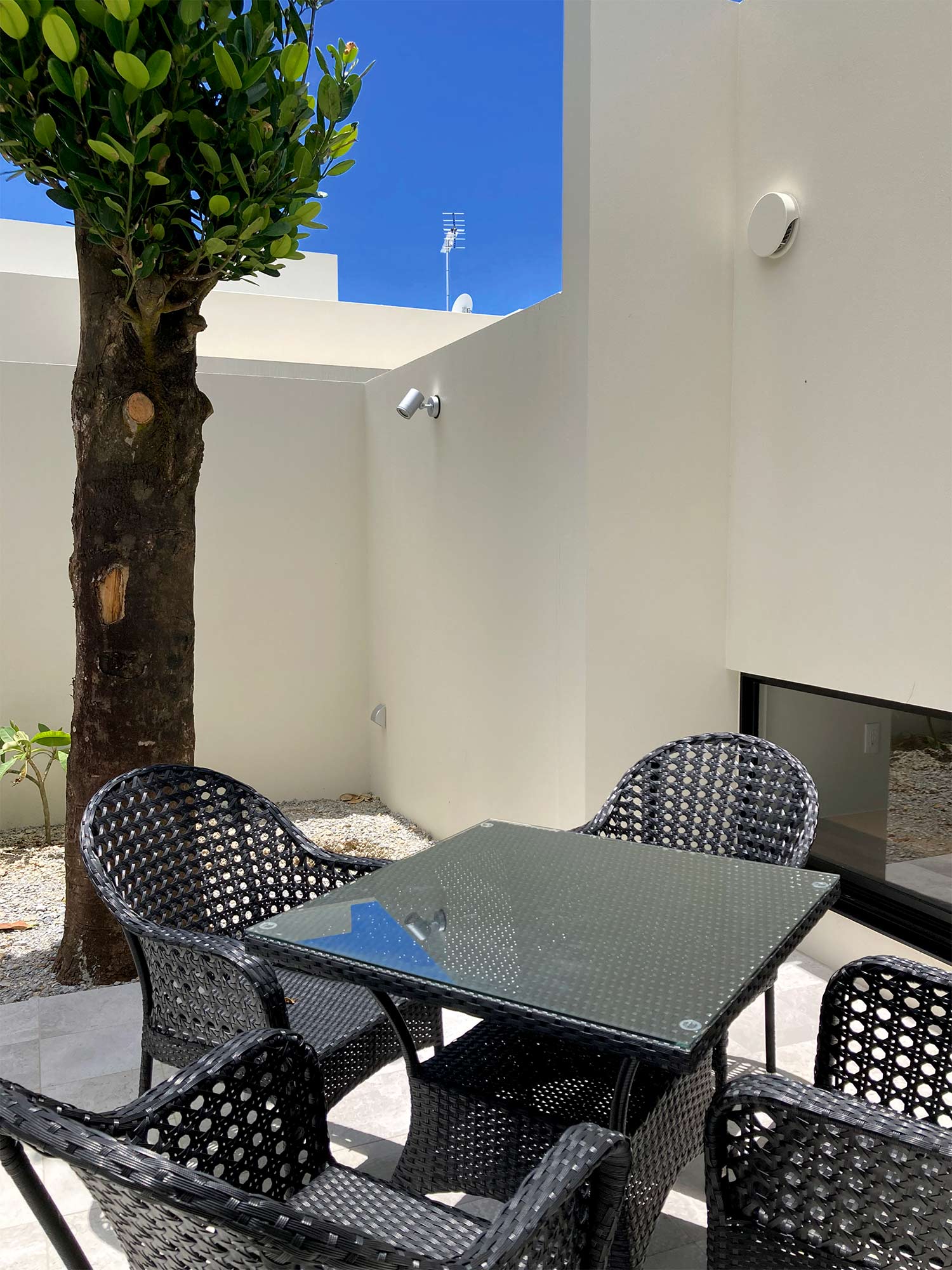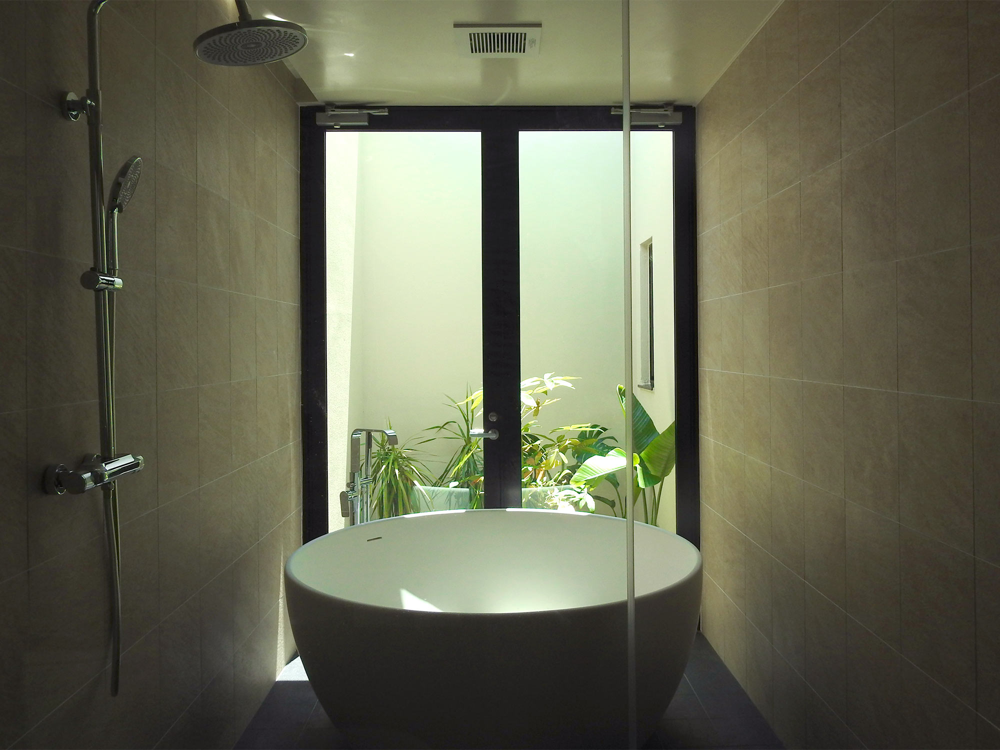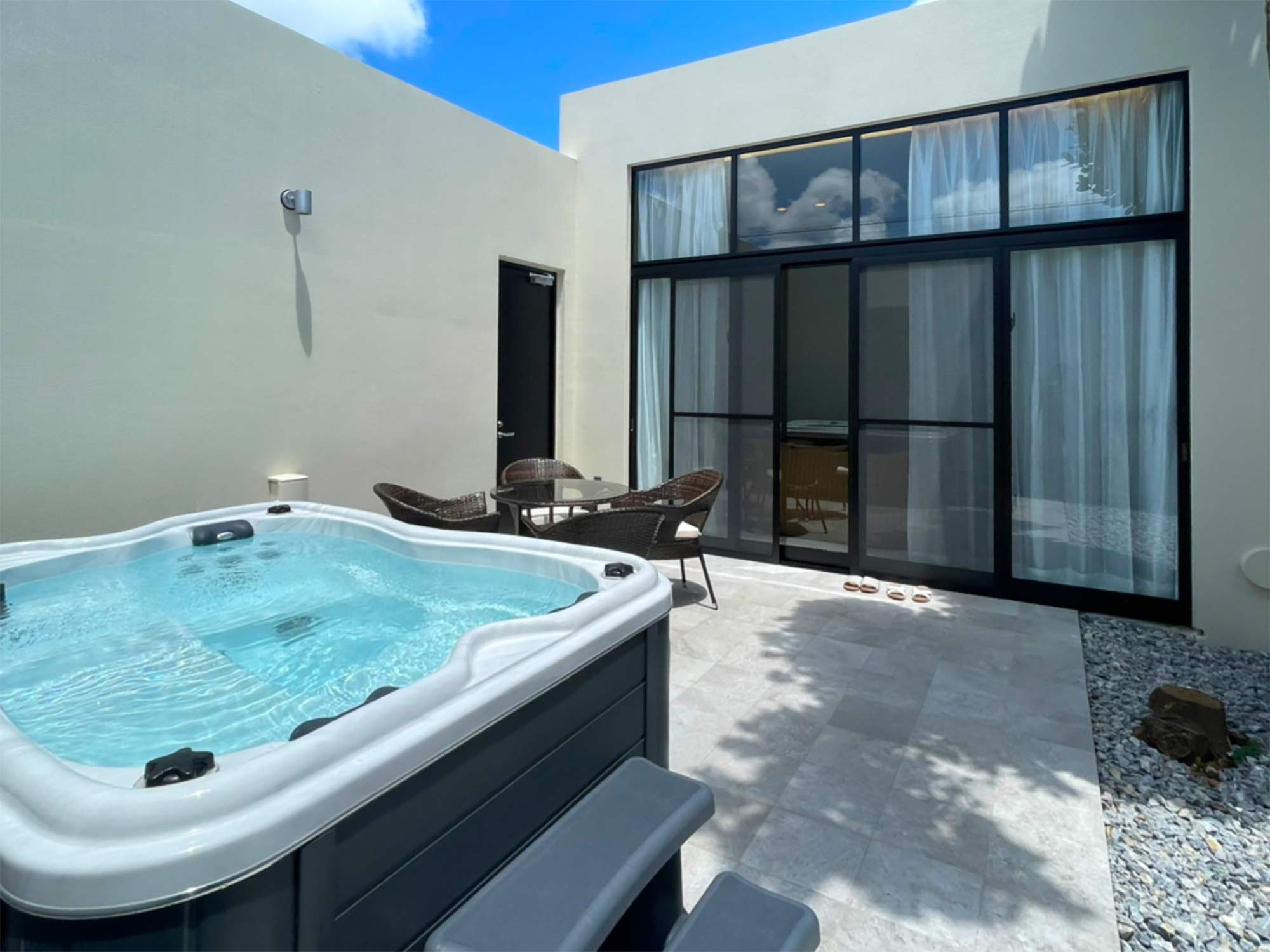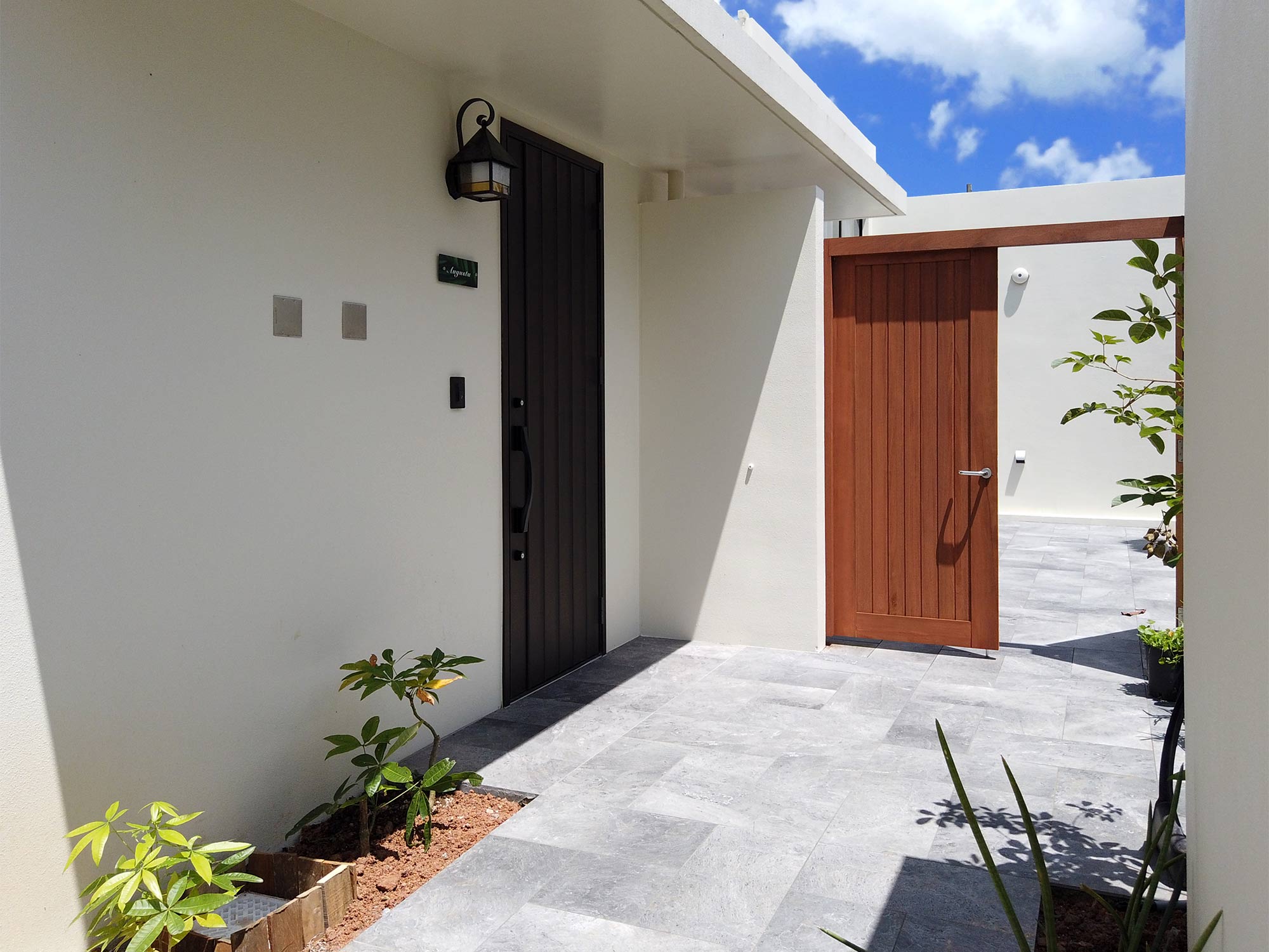 LIFE INDAHは1棟貸しきりタイプの滞在型ヴィラです。ヴィラは、部屋の広さや間取り等が異なる独立した5つの客室棟ーPlumeria(プルメリア)、Bougain(ブーゲン)、Jasmine(ジャスミン)、Augasta(オーガスタ)、Deigo(デイゴ)に分かれており、入り口も別方向に設置しているため、プライバシーが保たれています。